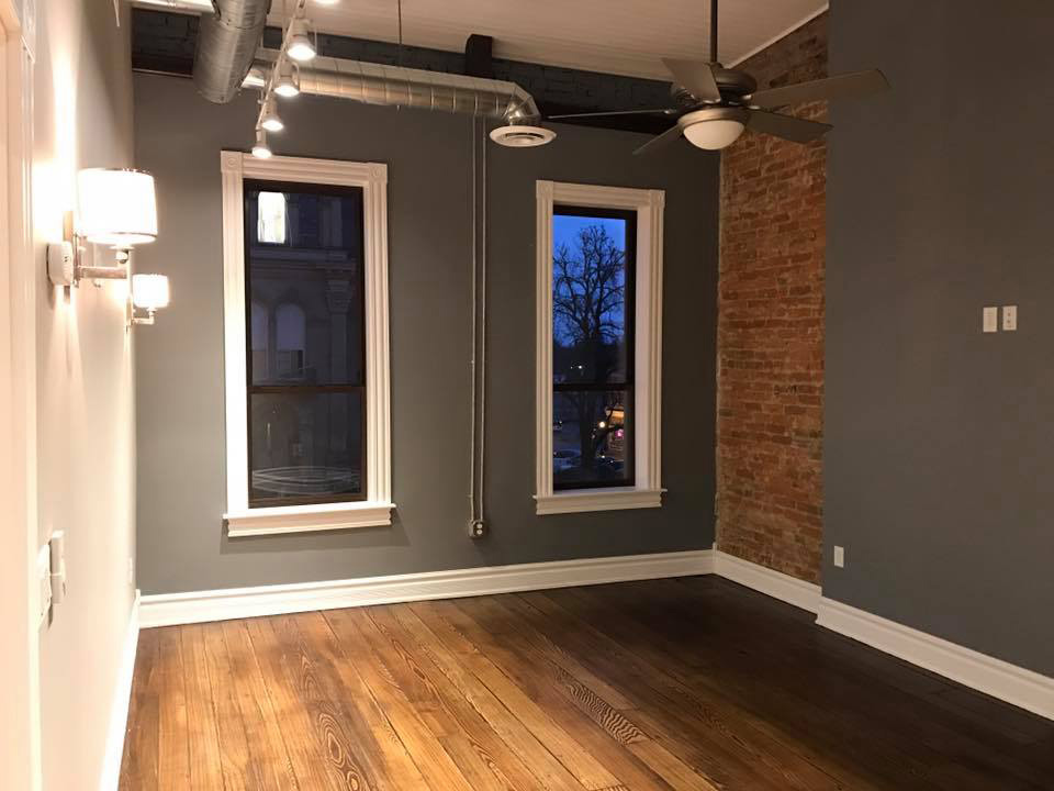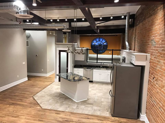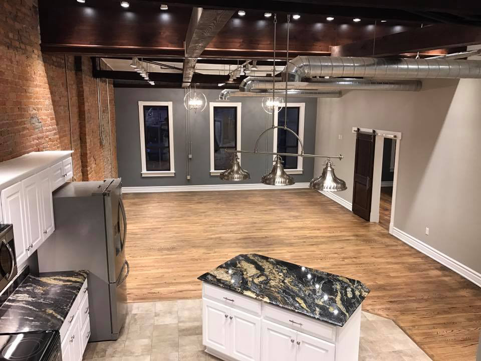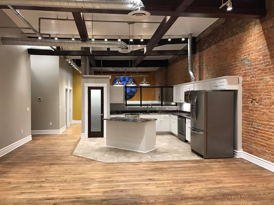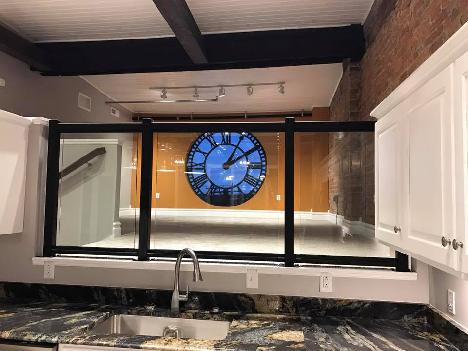 The Wissler Penthouse is very special. When you enter the penthouse you will be amazed by how open this space is, the 20' ceilings and exposed stainless ductwork, and then, there's the views. Take in Main Street and the stately Logan County Courthouse. The bonus loft can serve as an office, play room, study, or even 2nd bedroom. The ornate historic clock face came from a seminary out of Dayton, Ohio that was demolished a few years ago, and now serves as a beautiful window and distinguishes this space from any other Logan County. Hosting friends and family has never been more fun.
