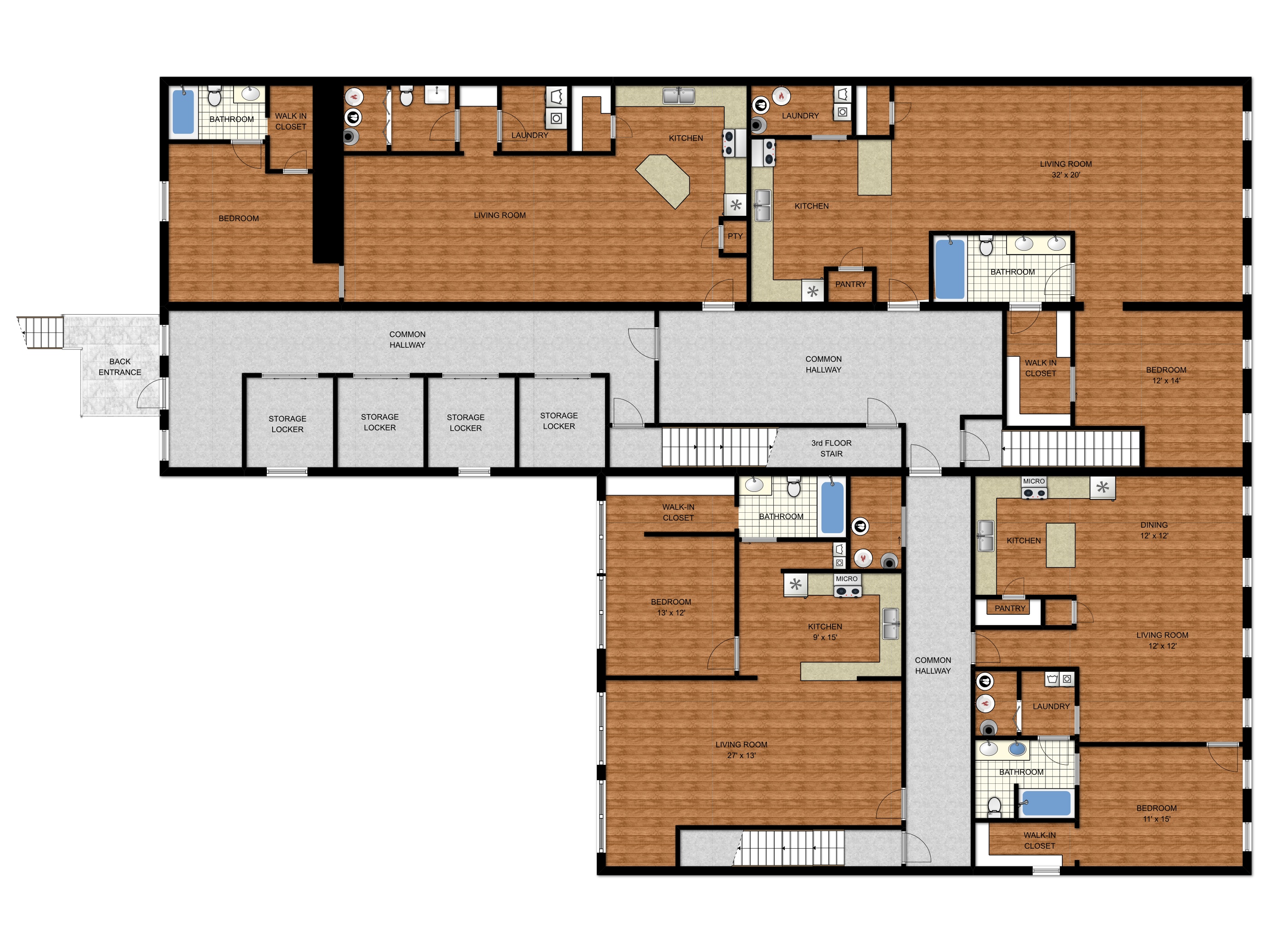 integrity including art-adorned common hallways. This floor includes lockable storage units for